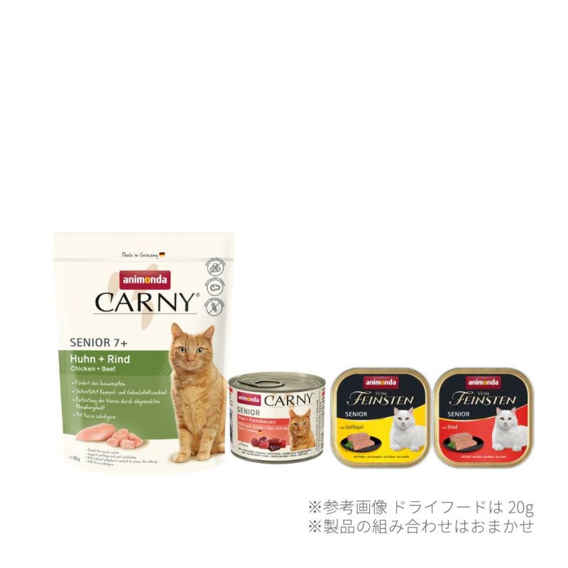 初めてアニモンダを使うシニア猫に向けたコンプリートフード詰め合わせセット。